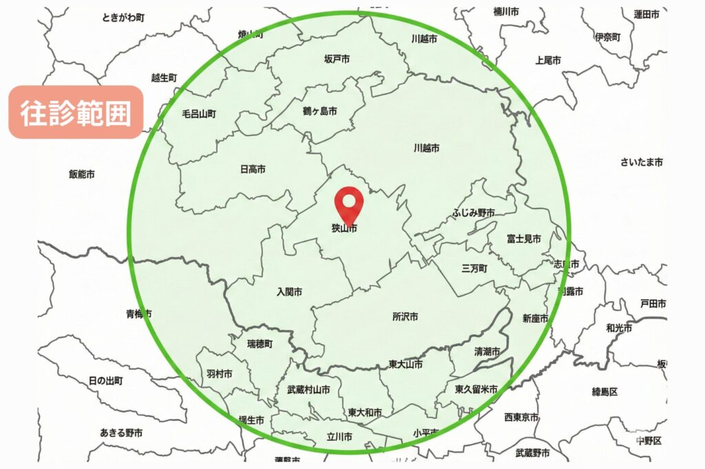 はる在宅クリニックでは埼玉県狭山市を中心とした下図圏内を対応地域としております。